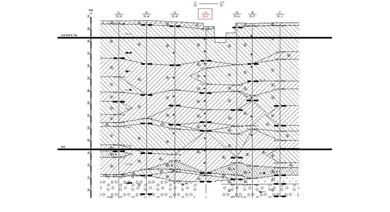 在勘探深度范圍內觀測到兩層地下水: 第一層地下水類型為潛水, 穩定水位埋深為 12.10 ~ 13.00m,水位標高為 26.06~27.21 m;第二層地下水類型為承壓水,水頭埋深為 13.60~14.30 m,水頭標高為 24.78~25.65m。