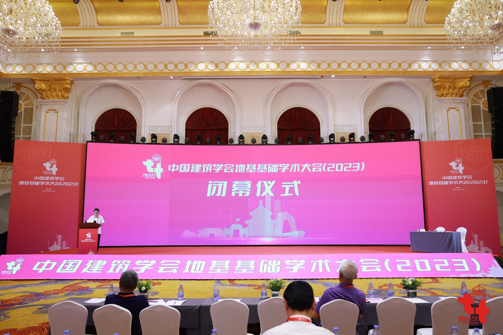 閉幕式上,中國(guó)建筑學(xué)會(huì)地基基礎(chǔ)分會(huì)王曙光秘書長(zhǎng)進(jìn)行大會(huì)總結(jié)發(fā)言,并宣布下一屆(2024)將由鄭州大學(xué)承辦。鄭州大學(xué)土木工程學(xué)院院長(zhǎng)郭院成代表承辦方發(fā)表講話,他表示,作為下一屆大會(huì)的承辦方,將會(huì)舉好中國(guó)建筑學(xué)會(huì)地基基礎(chǔ)分會(huì)的旗幟,和分會(huì)進(jìn)行溝通商量做好落實(shí),精心做好大會(huì)服務(wù)工作,期待大家明年河南再見。